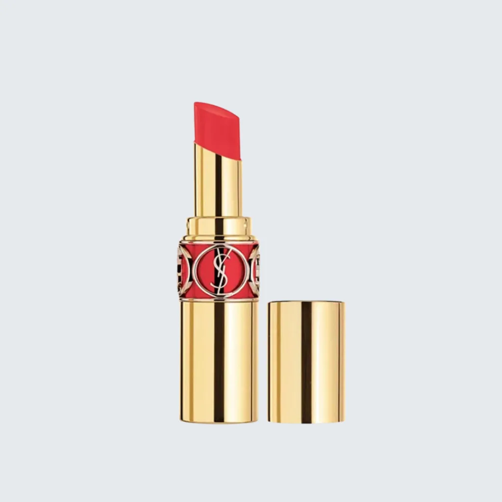 YSL is a high-end French lipstick line celebrated globally for its trendy, luxurious tones. The YSL Rouge Volupté Shine Oil-in-stick 82 Orange Crepe is a gorgeous coral orange featuring a warm, bright sheen. It offers a buildable sheer-to-medium colour coverage. The oil-in-stick texture is remarkably light, soft, and comfortable, providing an even, natural colour payoff that lasts for a solid 4 hours.
