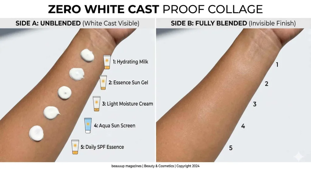 - Finish: Zero white cast. It leaves a rare, stunning semi-matte and velvety finish that keeps you looking fresh, not greasy.
